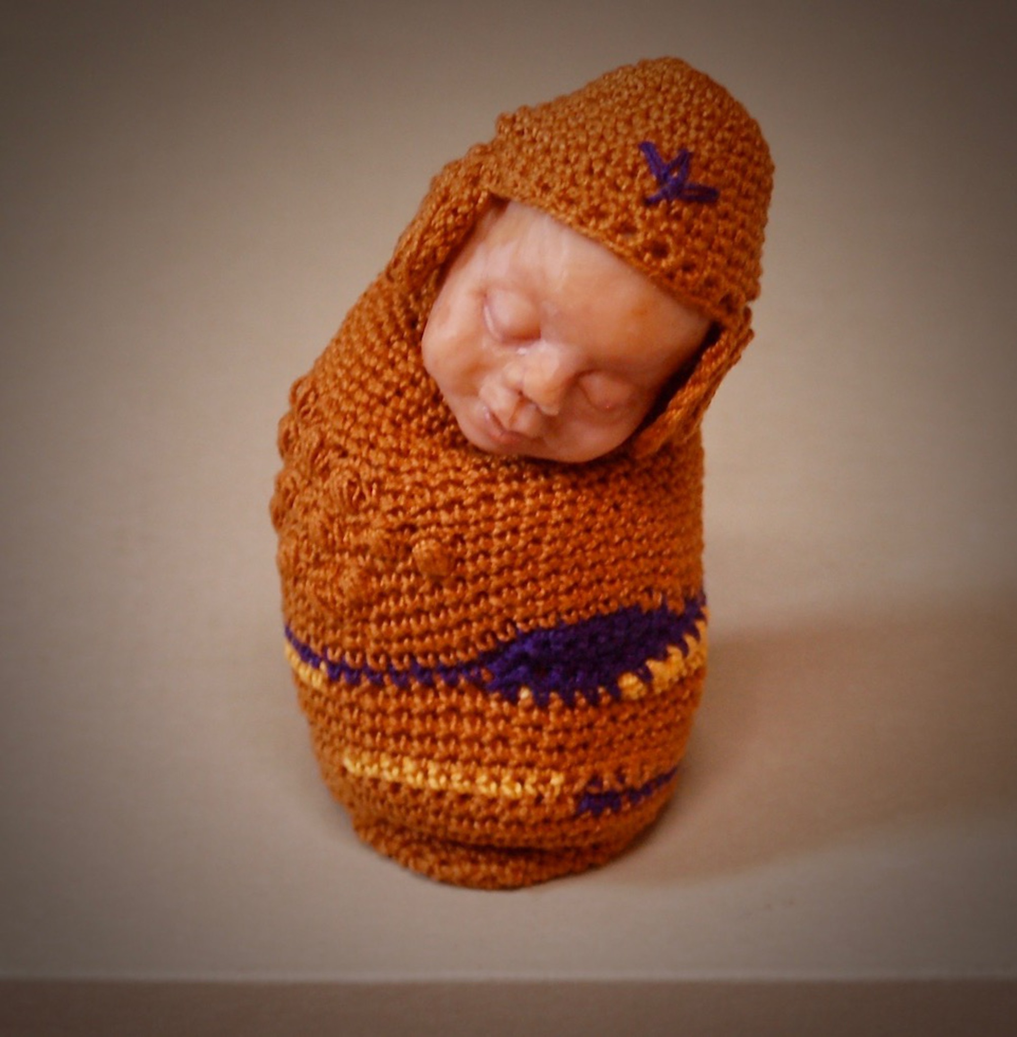 Polymeerklei, gehaakt katoen.