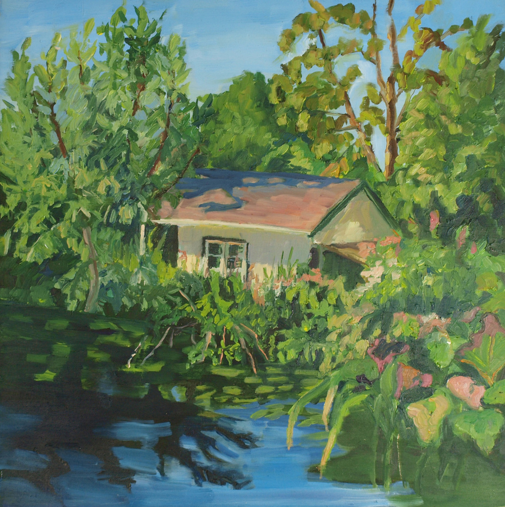 Groen Natuur Amsterdam Park Tuinhuis Landscap Siegerpark Volkstuin Volkstuinencomplex Bomen Green Trees Bos Boom Olieverf Olieverfschilderij Schaduw Lichtval Pleinair Pleinairschilderij Amsterdamwest Amsterdamnieuwwest Natuurschilderij Weerspiegeling