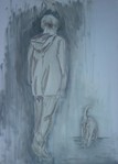 Litho, lithokrijt op transferpapier, aan de hand van foto uitgewerkt.