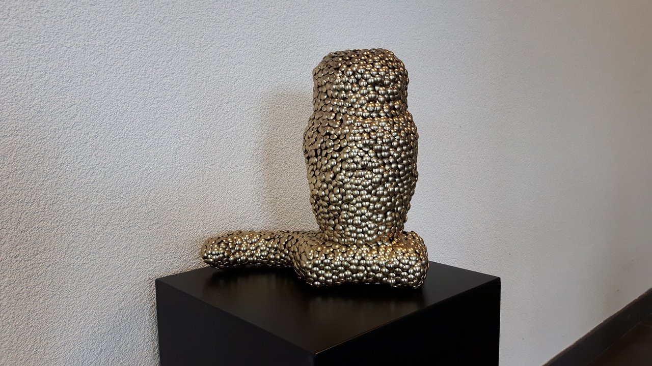 Door mijn ogen gezien, is de tastbare wereld opgebouwd uit puntjes. Vele bewegende puntjes, in verschillende dichtheid, veroorzaken vorm, maar veel minder vast dan je tastend zou voelen. In mijn werk communiceer ik deze waarneming.