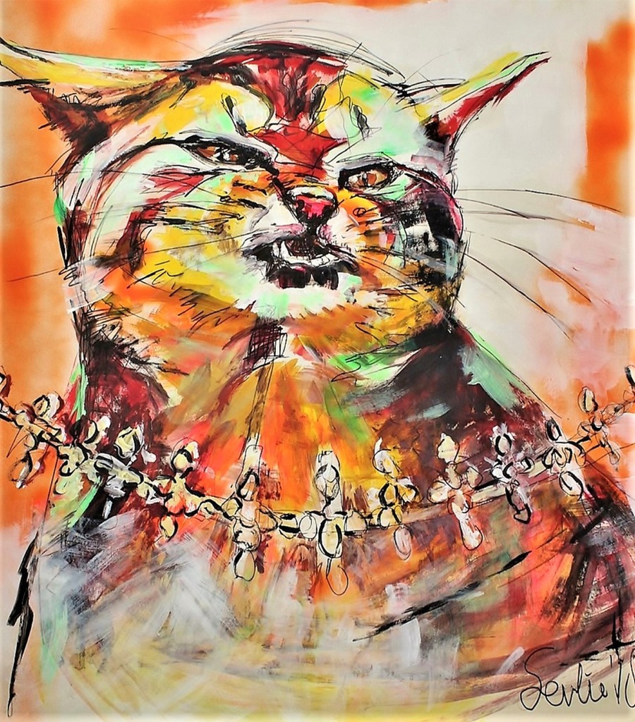 Expressief Portret Model Kat Kleur Boos Animalart Kattenschilderij Kunstkaart Portraitart