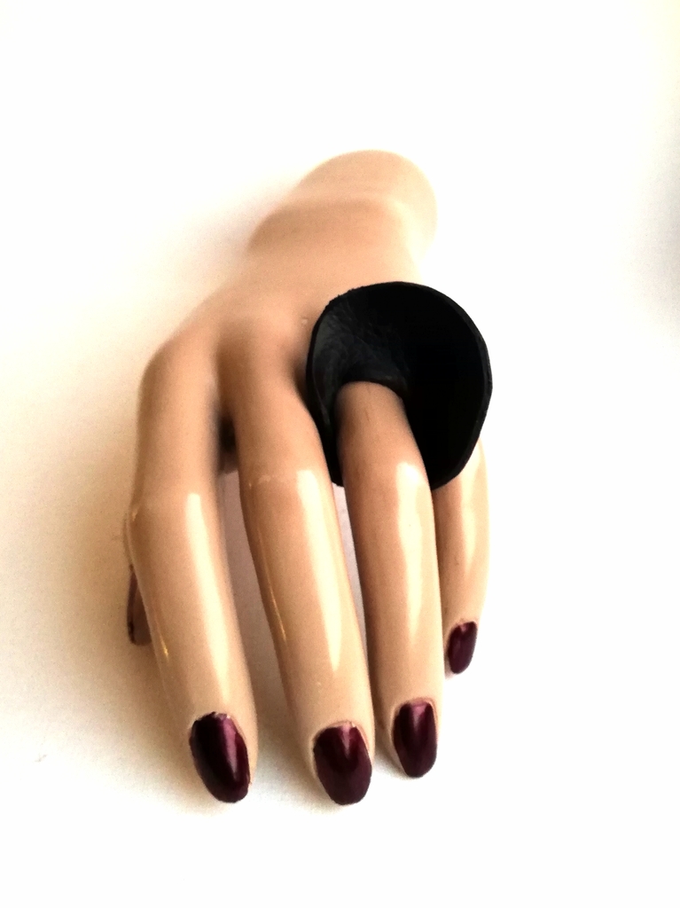 Draagbare kunst , statement sieraden handgemaakt van hergebruikt leer Wearable art - recycled leather