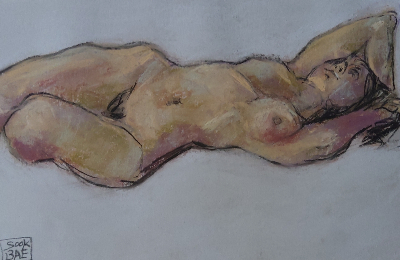 Sook Bae(1959)is in 1980 afgestudeerd aan de young nam college(Toegepast kunsten) in zuid-korea In 1996 volgde zij modeltekenen aan de Grand Academie te parijs Sins 1997 woont ze in Amsterdam. "ik teken en schilder direct naar model Het onderwerp dat my blijvend inspireert is de mens; poserend of bezig met alledaagse dingen, De techniek van het tekenen is sumi-e is mijn grote Liefde. Als ik goed bezig ben, werken mijn ogen en handen Samen en is mijn hoofd leeg; het voelt als een Meditatie"