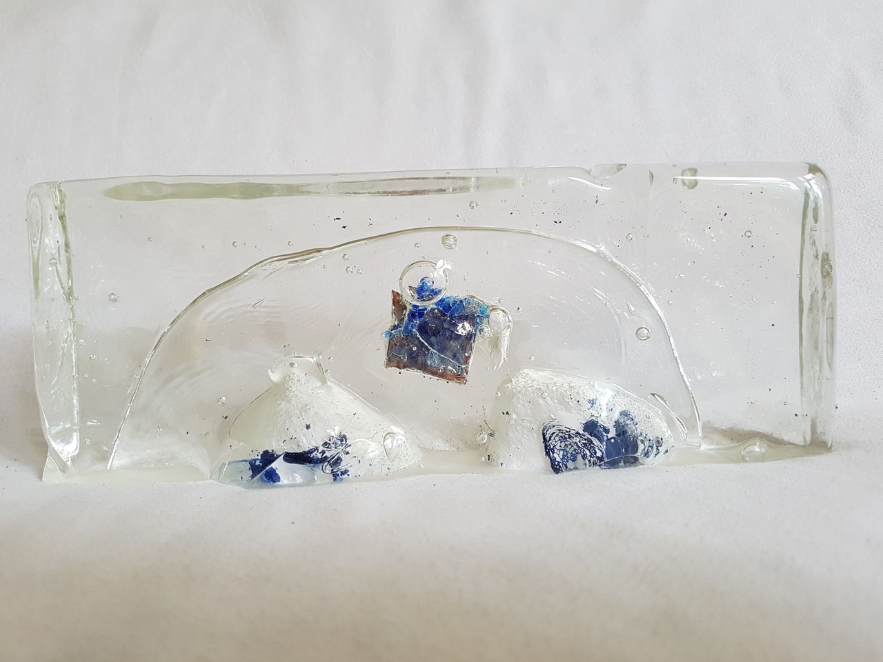 gegoten glas met insluiting van geemailleerd koper