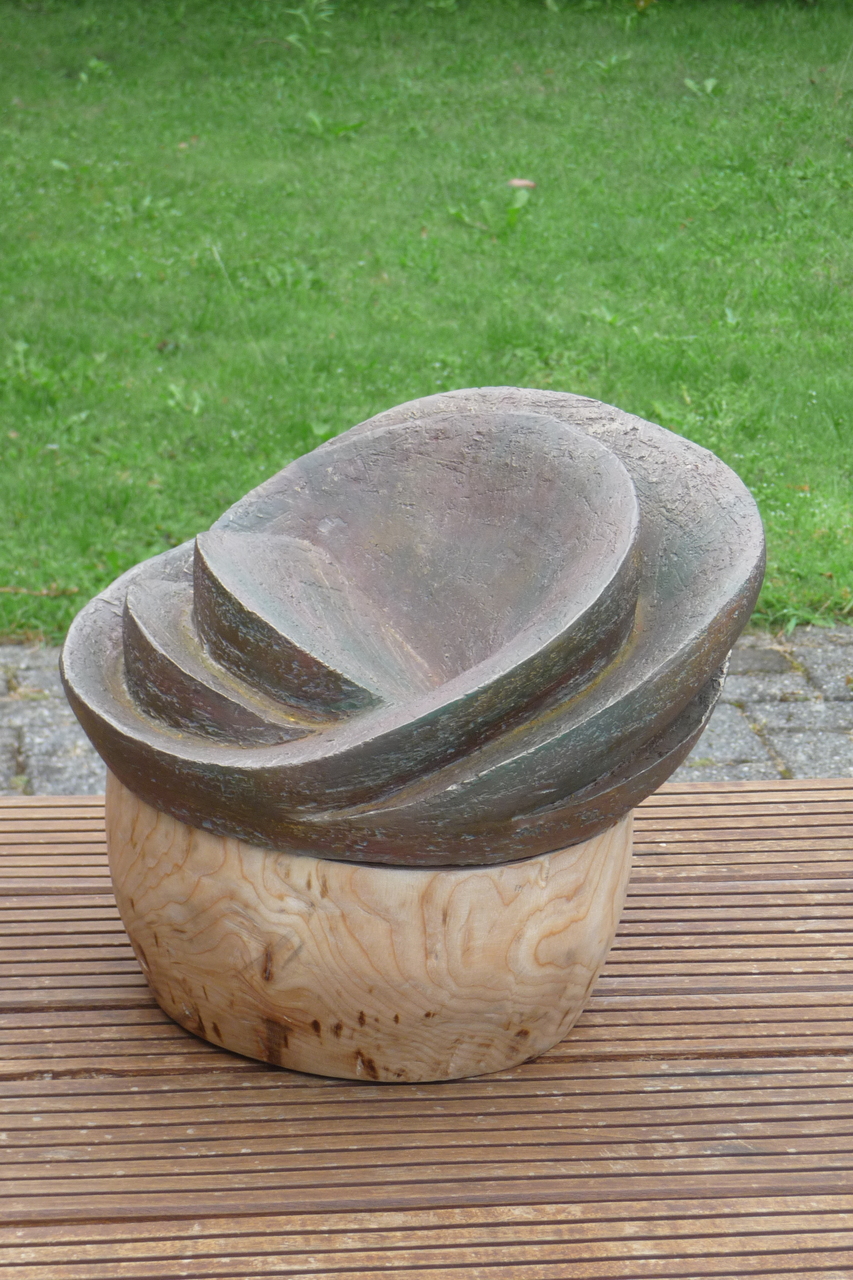 Gestileerd beeld, geïnspireerd op de zwamvormigen uit de natuur. Inclusief houten sokkel.