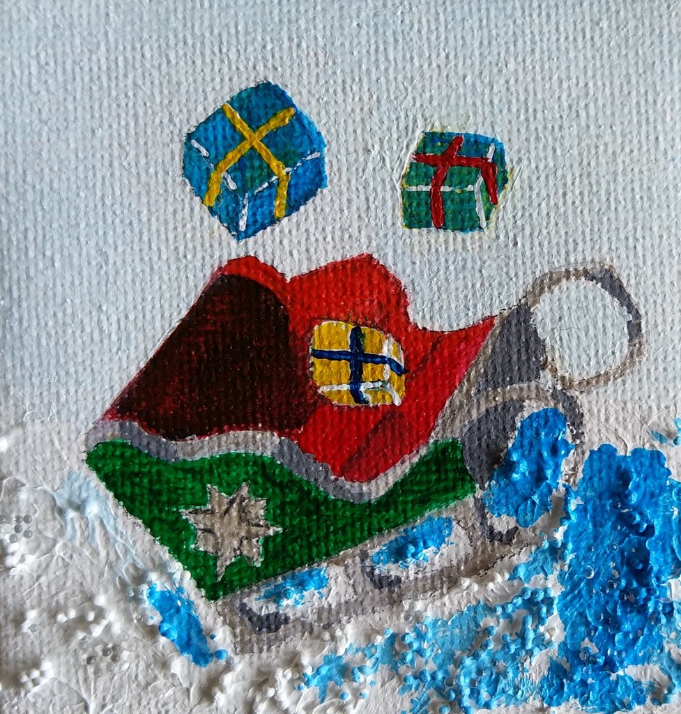 Dit ie een mimiatuur schilderijtje dat wordt gemonteerd op een ezeltje en komt kerst 2019 in het Museum Maassluis in de kerstboom te hangen. Het is dus nog niet te koop.