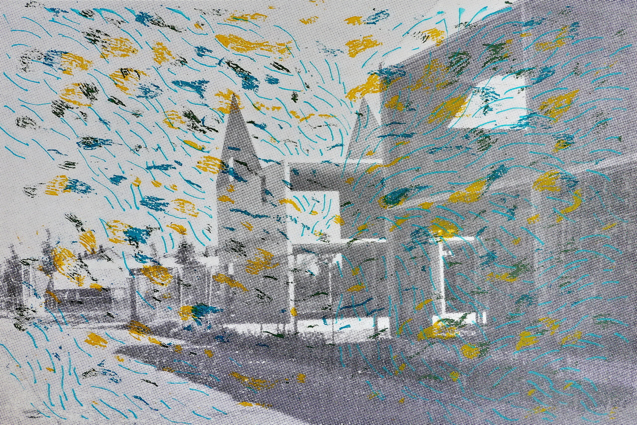 Zeefdruk op 240 grams papier, in 5 drukgangen.