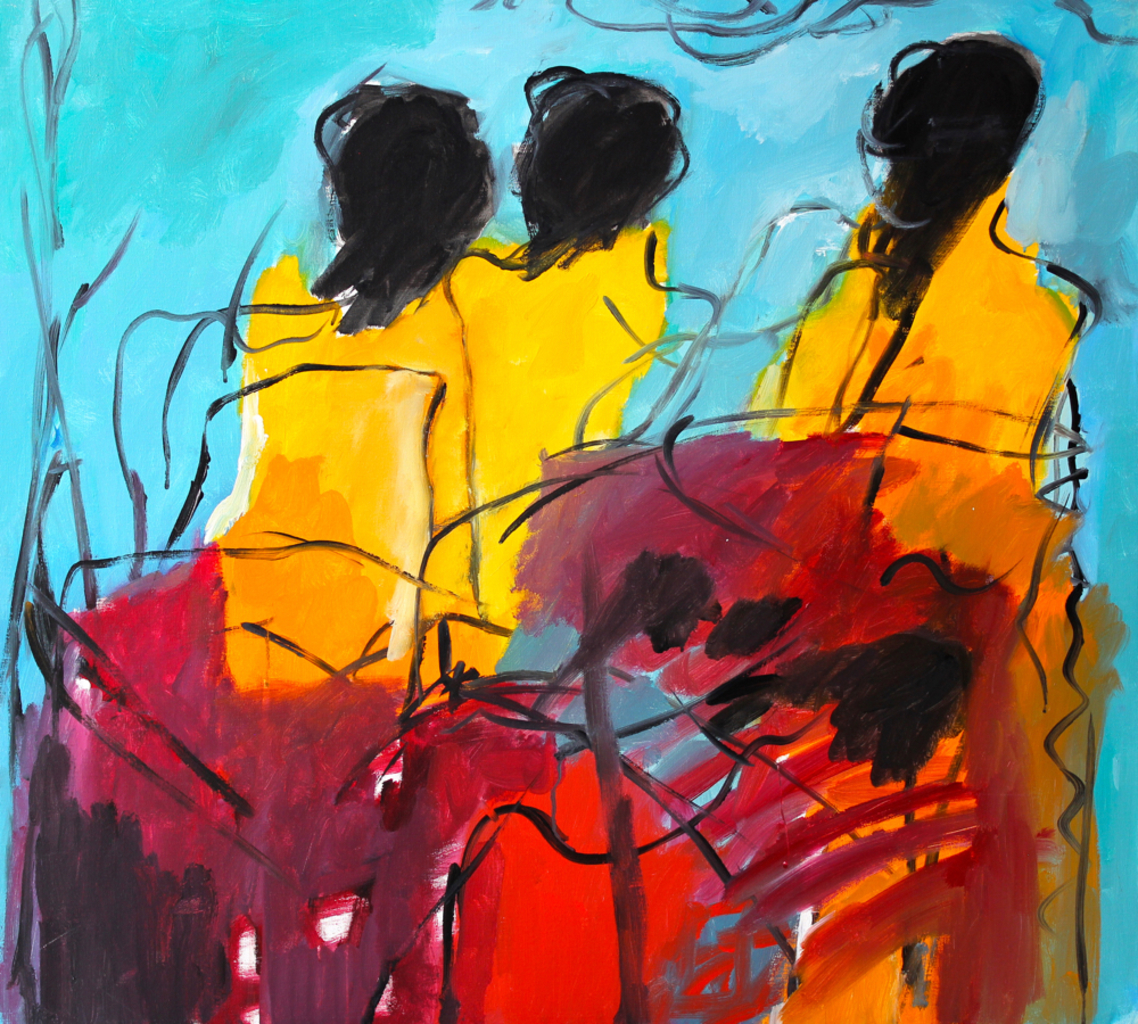 Abstract Modern Canvas Painting Acrylic Landscape Figurative Expressionistic People Colorful Surrealistic Original Composition Lyrical