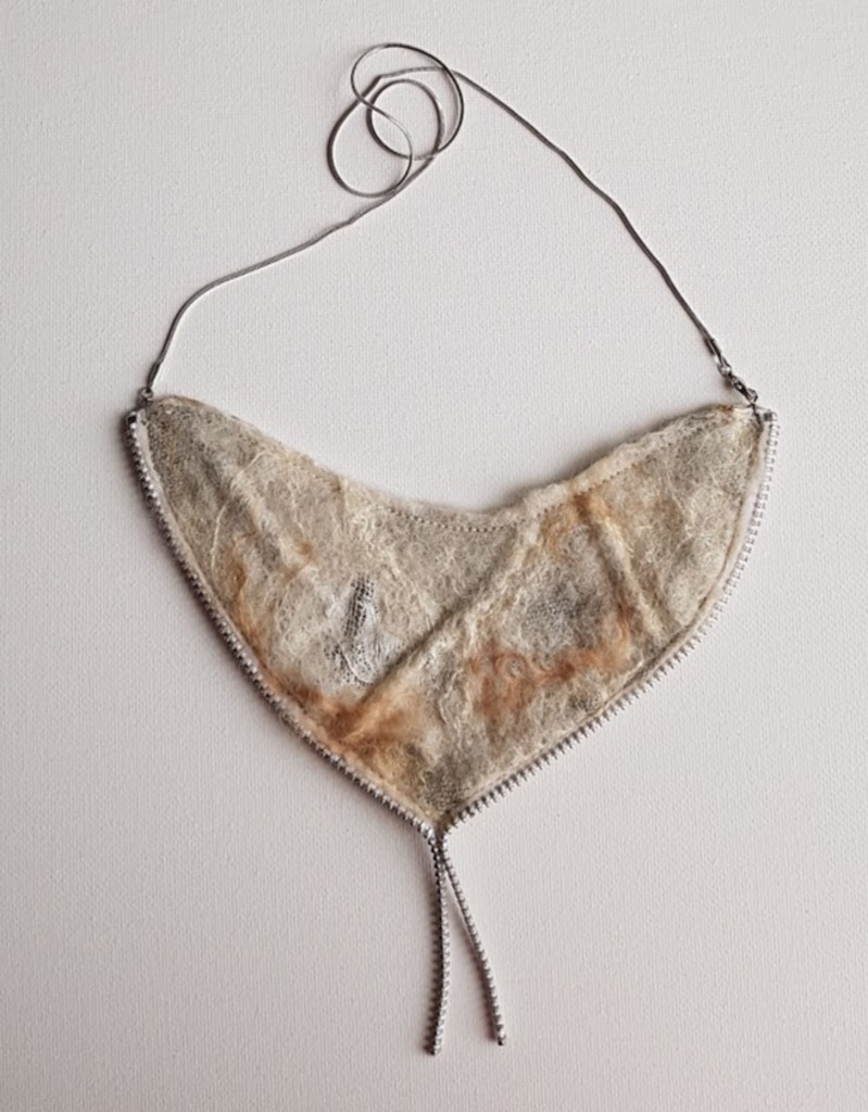 Halssieraad Cremewit Vilt Metaal