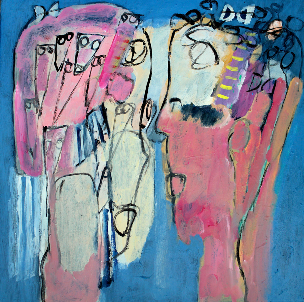 Abstract Modern Canvas Painting Acrylic Landscape Figurative Expressionistic People Colorful Surrealistic Original Composition Lyrical