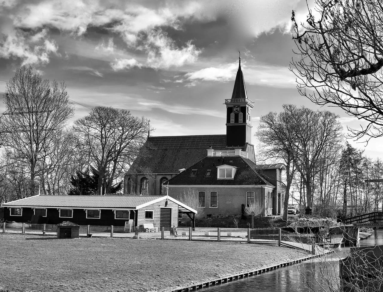 Wit Zwart Landschap Zwart/wit Kerk Dorp Grootschermer