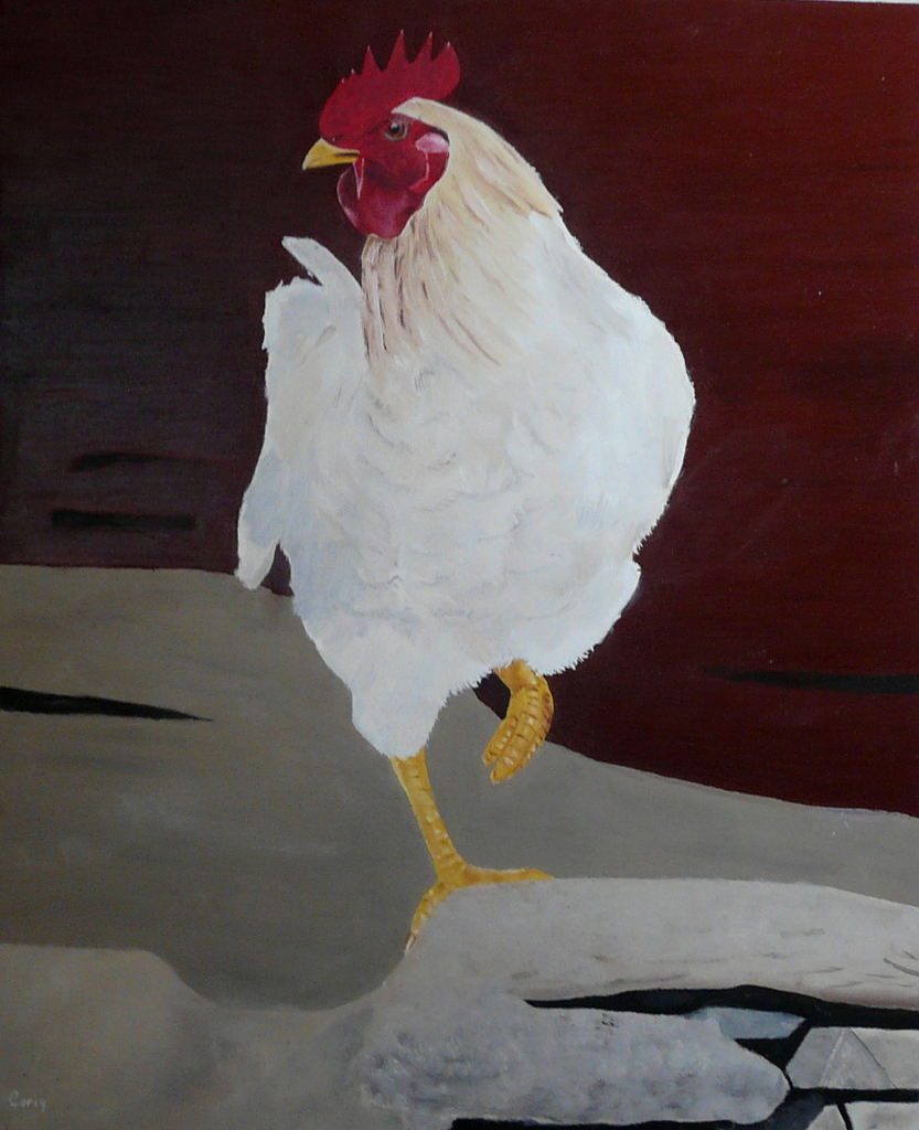 Haan Zand Steen Olieverf Lijst Realistisch Wit Rood Beige Grijs