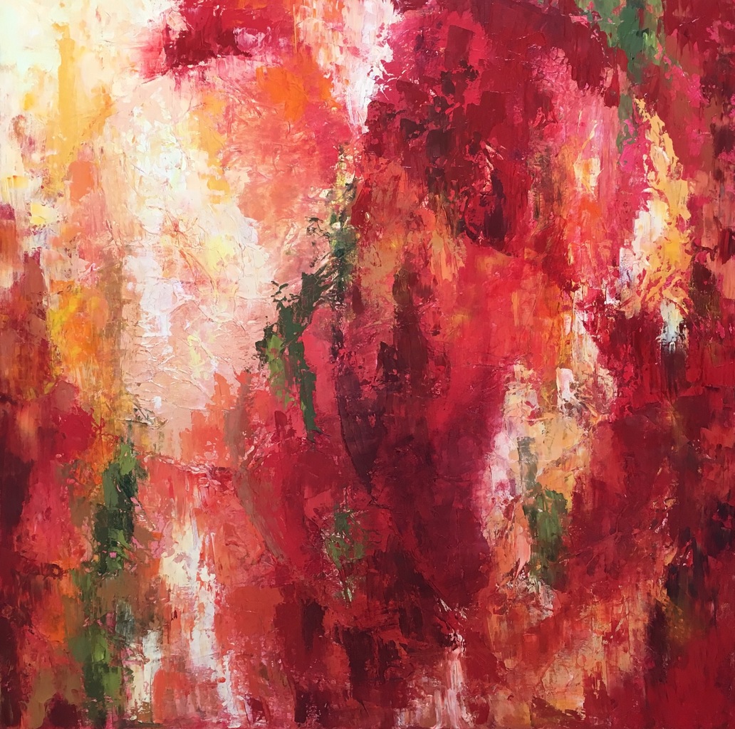 Heerlijk om een gevoel met een eigen draai aan de werkelijkheid op een abstraherende wijze op het doek te zetten.