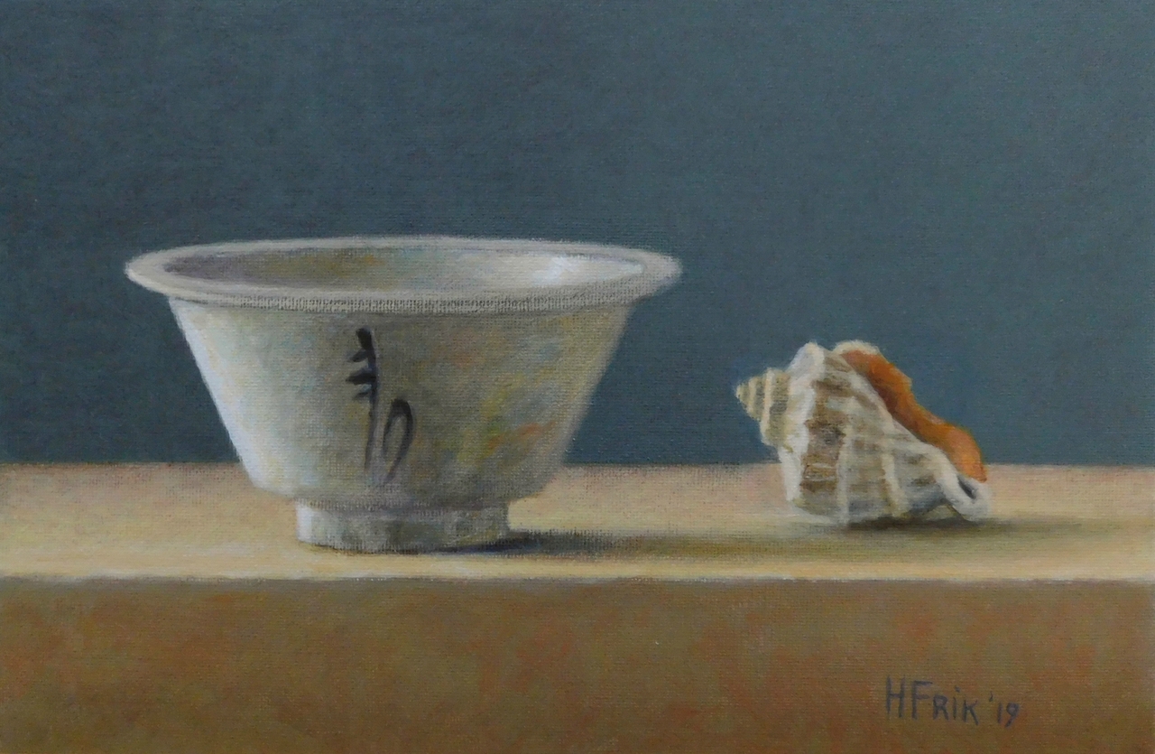 Stilleven met Chinees kommetje en schelpje.