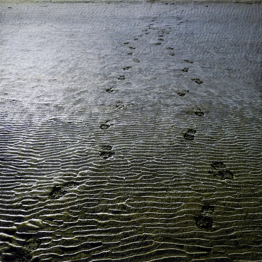 Ik ben een materialen mens, en maak samenvoegingen van verschillende materialen; foto’s, stoffen en borduursels, soms ook gecombineerd met hout, lood en steen, op wisselende formaten