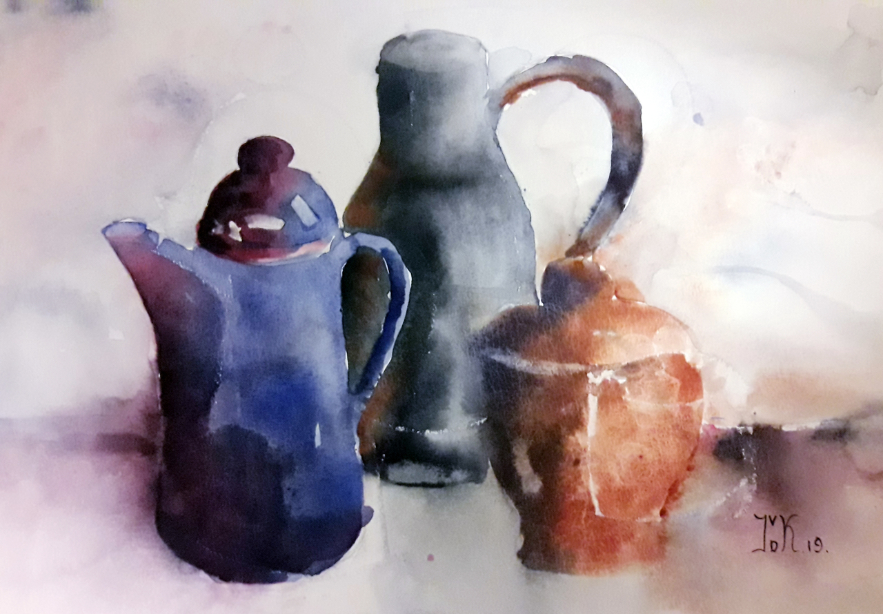 Aquarel 40 x 50cm inclusief passe-partout, vazen