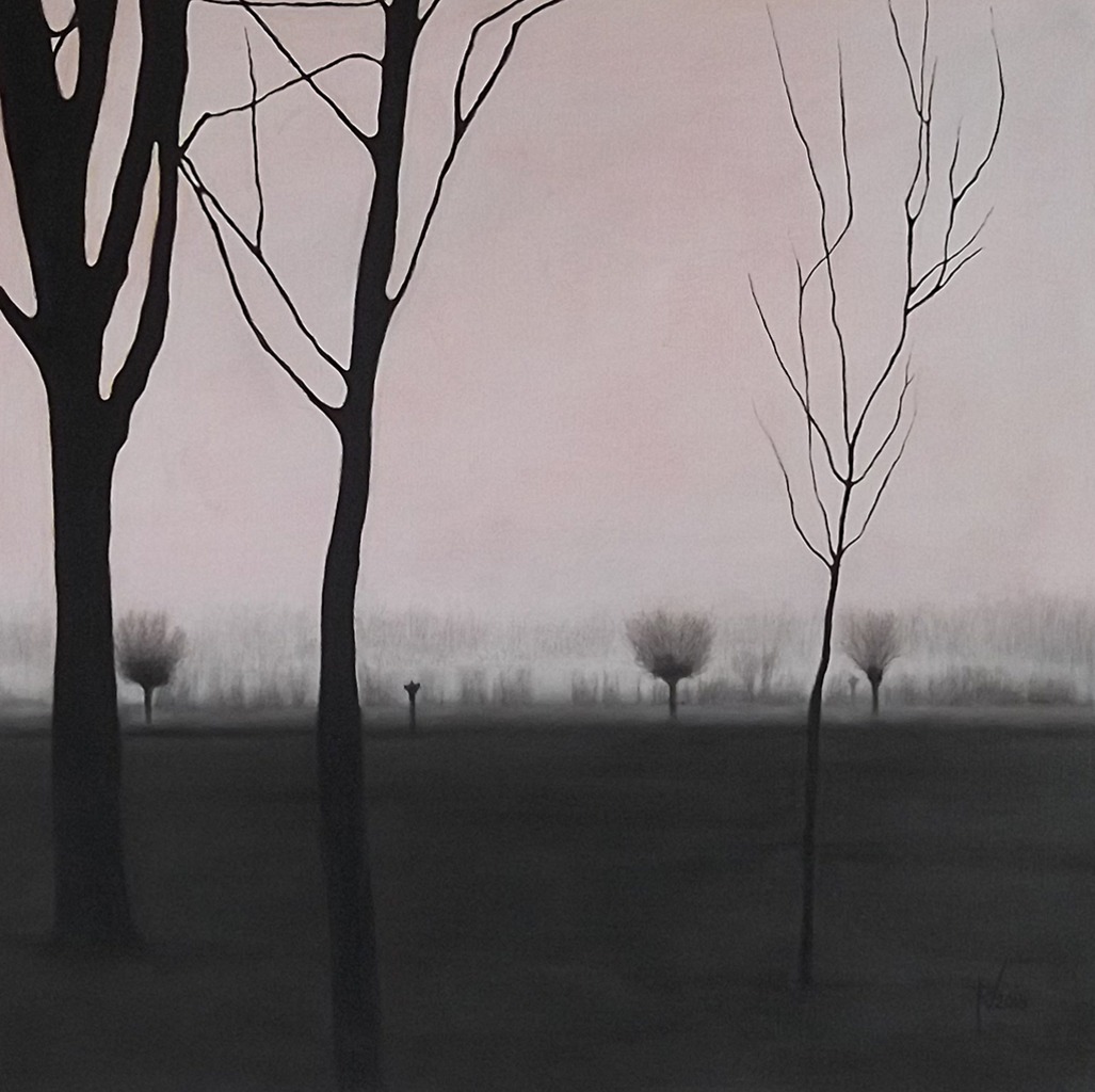 Randi Vettewinkel (Haarlem 1952) laat zich in haar werk inspireren door wat zichtbaar is of juist niet, de leegte die meer doet vermoeden, een verstild moment. Het zijn herkenbare gegevens in haar werk, zo laat Randi zich inspireren door stations, mensen die op de trein wachten, waar gaan ze naar toe, wat laten ze achter? Dekens, (Zaalberg en Zn. familie fabricaat) voelbaar de plek die ze innemen of de vergankelijkheid van bloemen, met een geheel eigen verhaal. Randi Vettewinkel voltooide de opleiding tekenen, schilderen en grafiek aan de Gerrit Rietveld Academie te Amsterdam en woont en werkt in Hoorn, naast vrij werk schildert ze ook portretten in opdracht. Werk van haar is aangekocht door gemeentelijke en provinciale instanties en particulieren en is in tal van galeries geëxposeerd. R