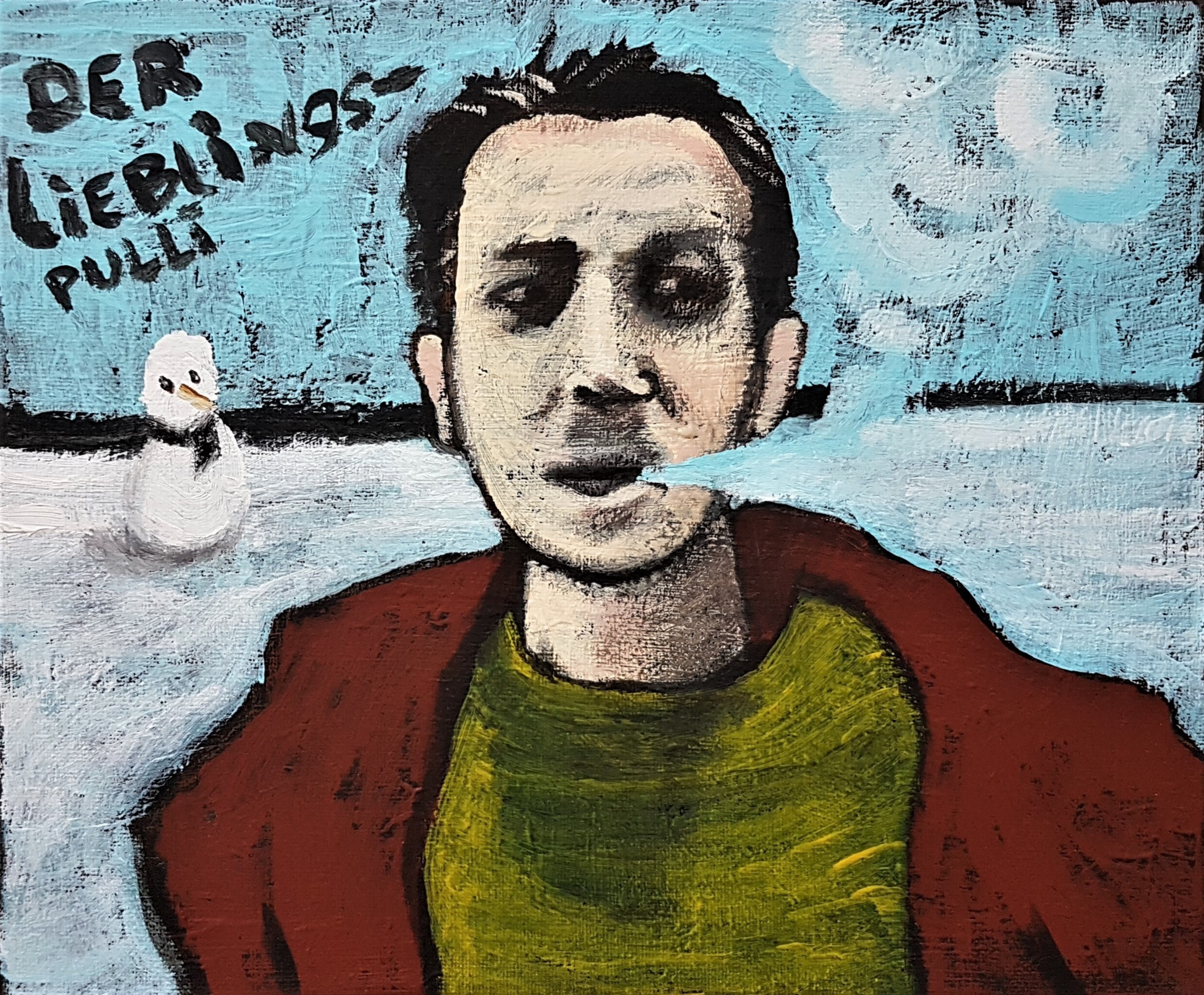 Landschap Acryl Portret Man Art Kunst Portrait Sneeuw Landscape Varkens Snow Original Sneeuwpop Snowman