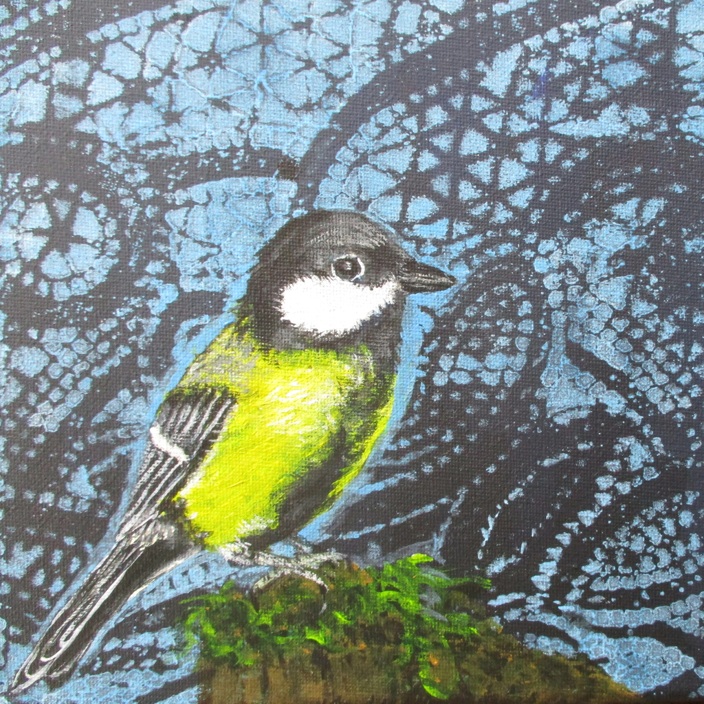 Koolmees, 20x20, acryl op doek.