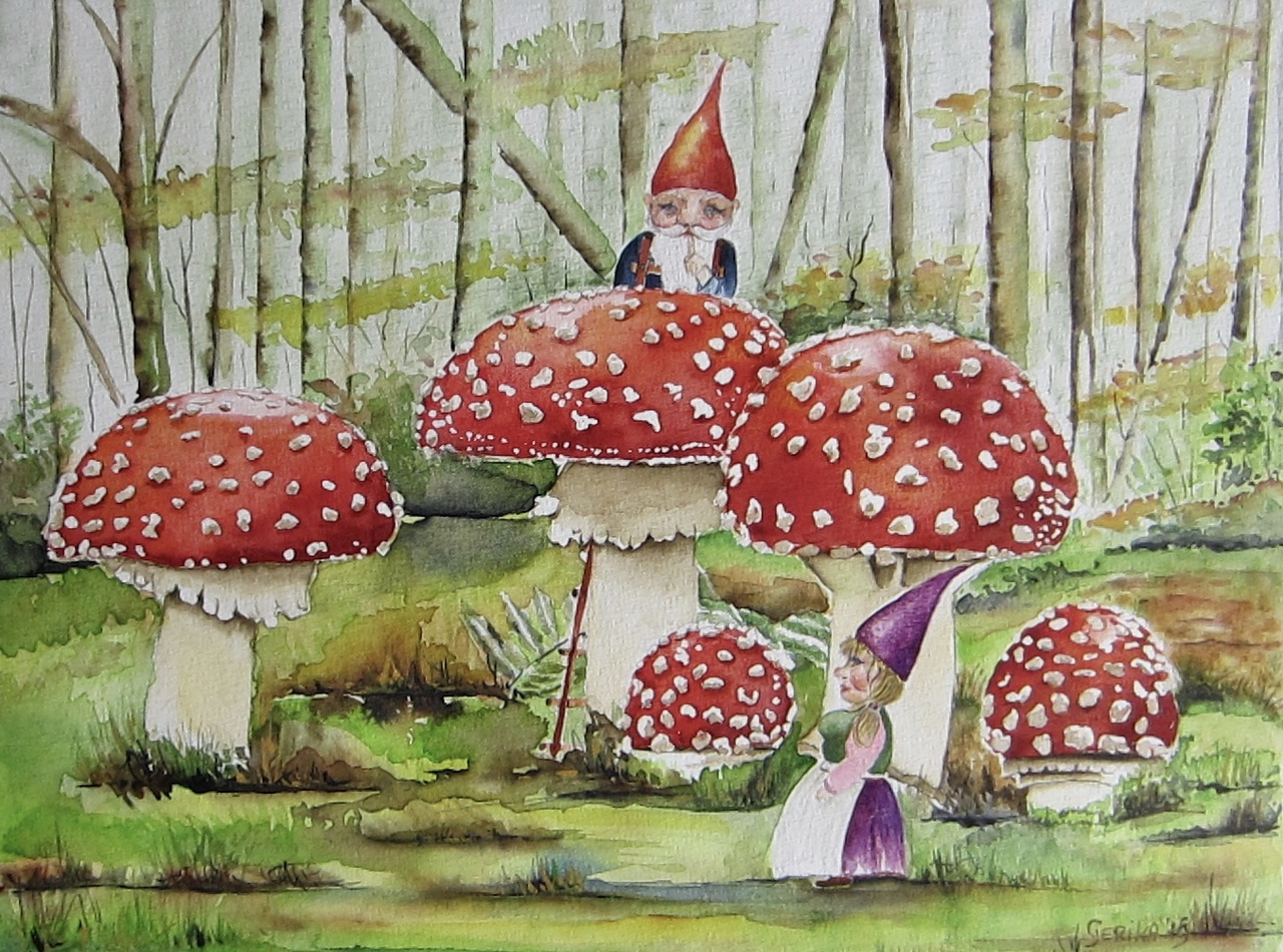 Als je goed kijkt tussen de paddenstoelen zie je heel soms... Kaboutertjes!