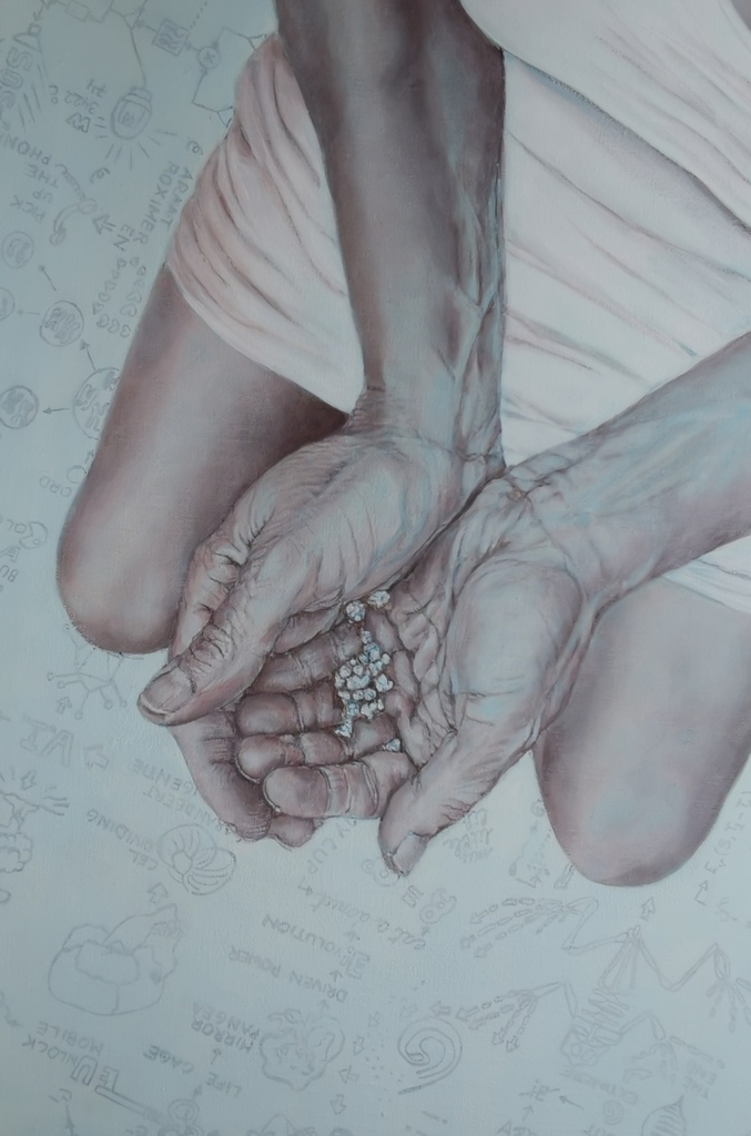 Debora De Haes is op zoek naar de plaats van het individu en zijn onderlinge verbondenheid met de huidige en volgende fase van ons bestaan. De gedachten aan een tijdperk gedomineerd door biotechnologie en kunstmatige intelligentie spelen mee in dit proces. Het is evenzeer een zoektocht naar evenwicht en dualiteit tussen rationeel denken en emotionele reactie.