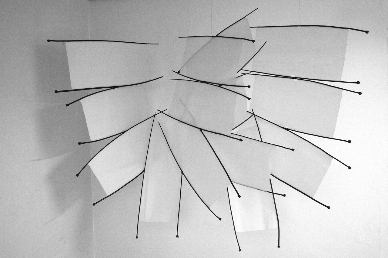 Materialen: papier, houten stokjes, rubber, inkt