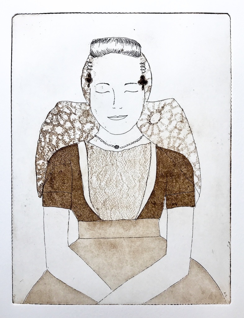 ets en aquatint van dame in Zeeuwse streekdracht