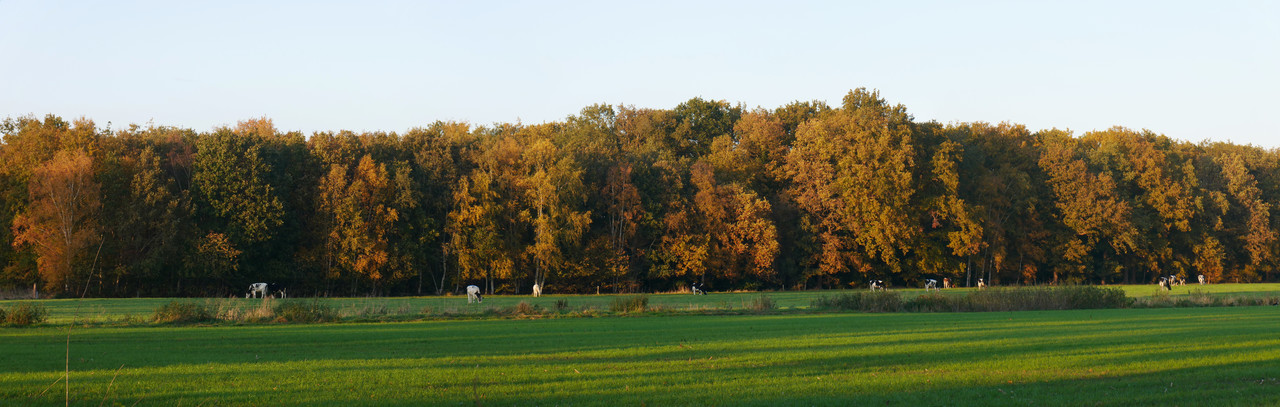 De zon geeft de herfstkleuren van de eiken een extra dimensie.