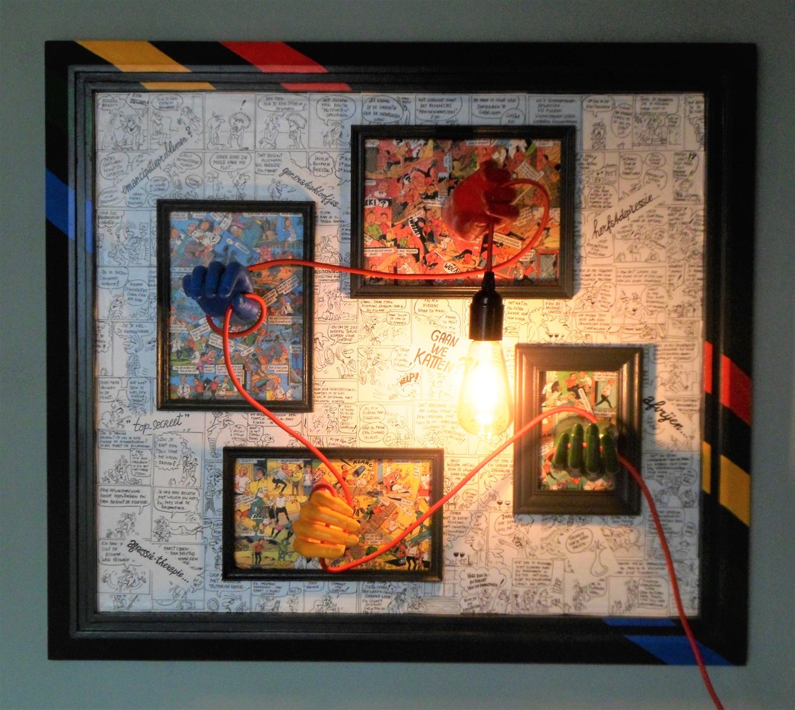 Unieke verlichting gemaakt van oude etalagematerialen.