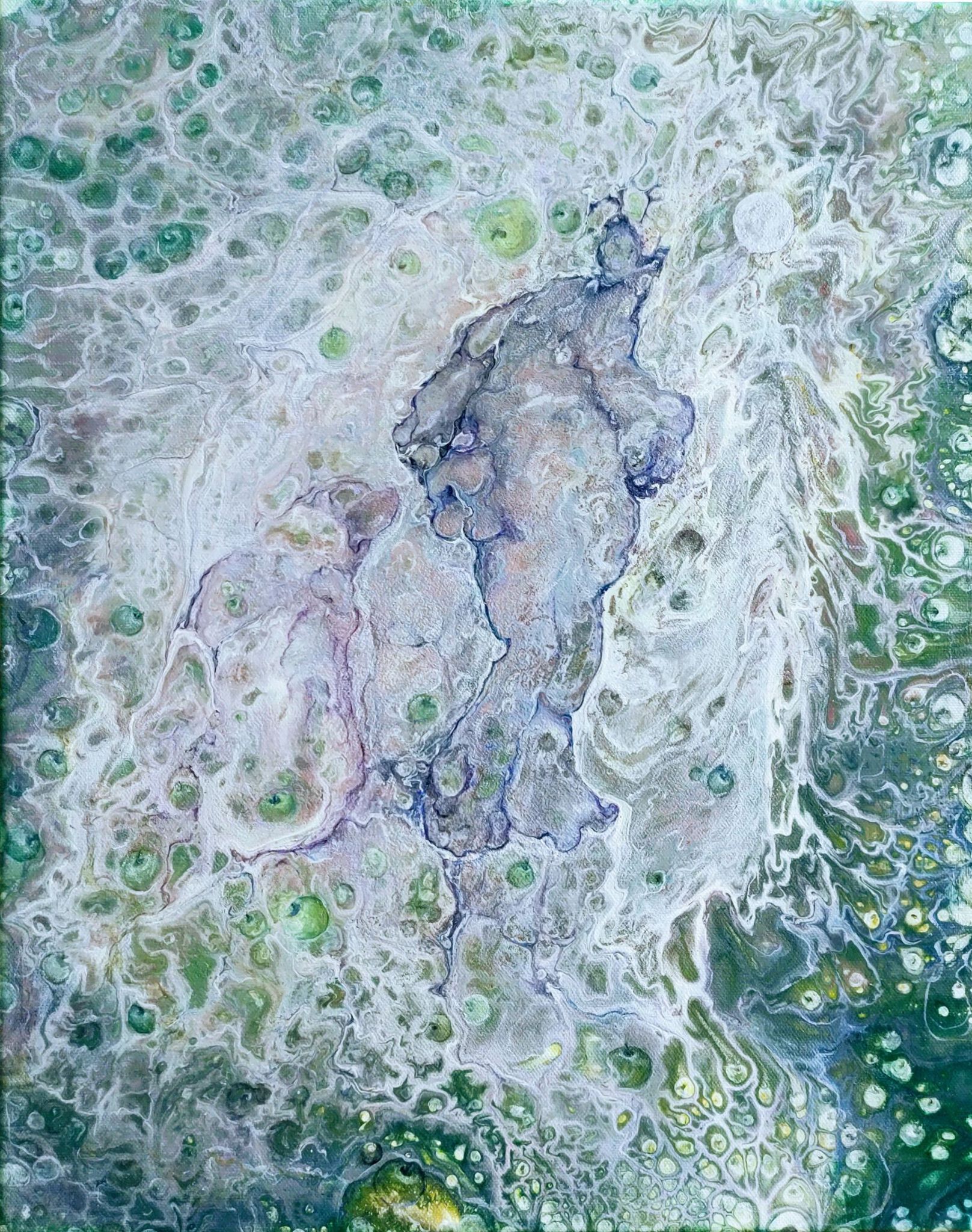 Een tuin van kleur, een blik vol verbeelding. Haar werk ademt een poetische zachtheid, maar ook lef: ze experimenteert graag met bladgoud, olieverf en gemengde technieken.