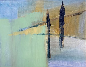 'Het landschap als vertrekpunt'. De natuur wil ik in al haar kleur, licht en donker, vormen en structuren weergeven. Mijn ontwikkeling blijft doorgaan, er is zoveel om naar te kijken en uit te drukken op het doek.