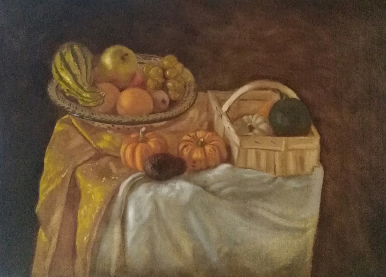 Fruit Stilleven Olieverf Schilderij Realisme Pompoen
