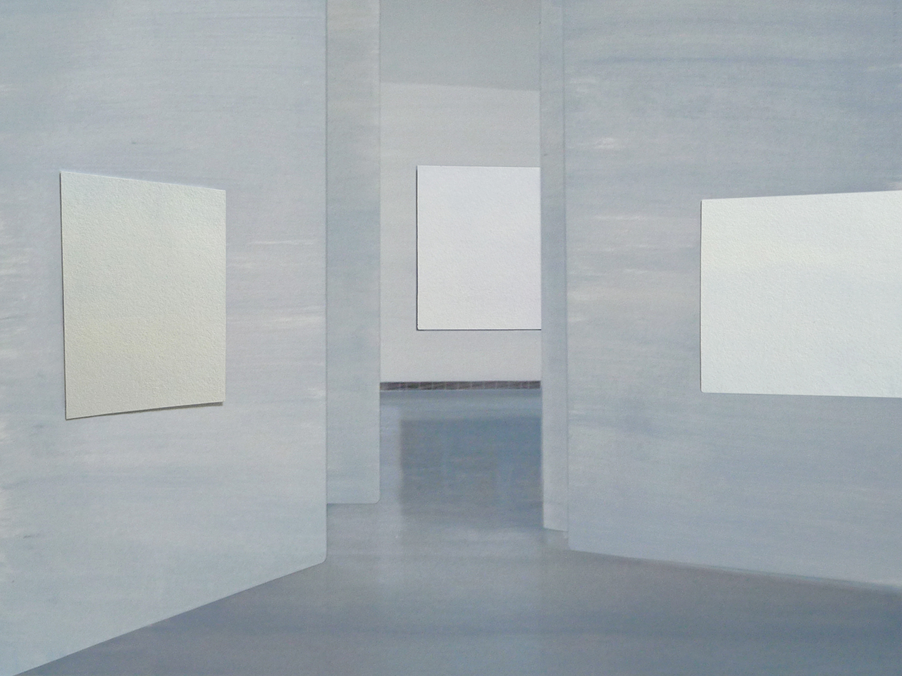 Figuratieve en abstraherende gouaches en montages. Onderwerpen: ruimte in de ruimste zin van het woord.
