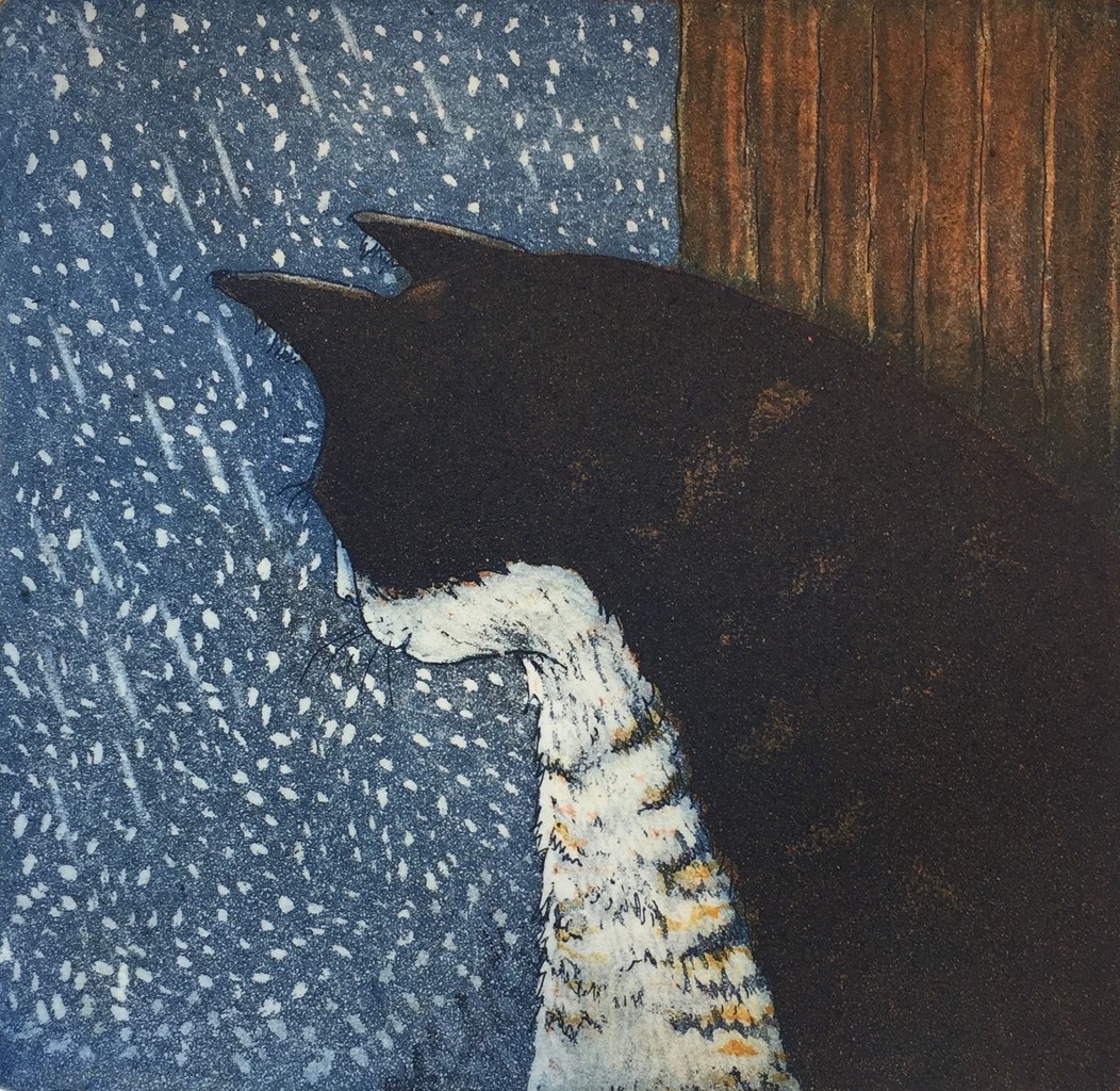 Sneeuw Kat Voor Het Raam Ets Kleurets