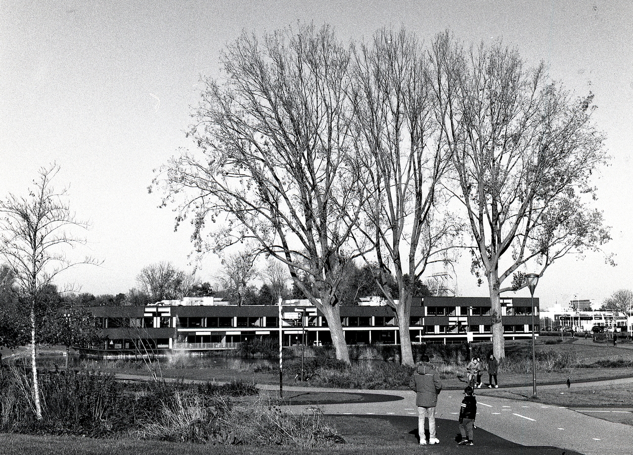 Stedelijk gymnasium, Leiden - Noord 2019 zwart / wit 6 x 6 cm Ilfort Fp5