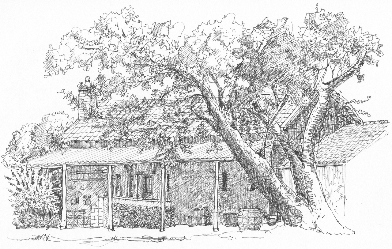 gezicht op oude verbouwde schuur in Lanty, Frankrijk