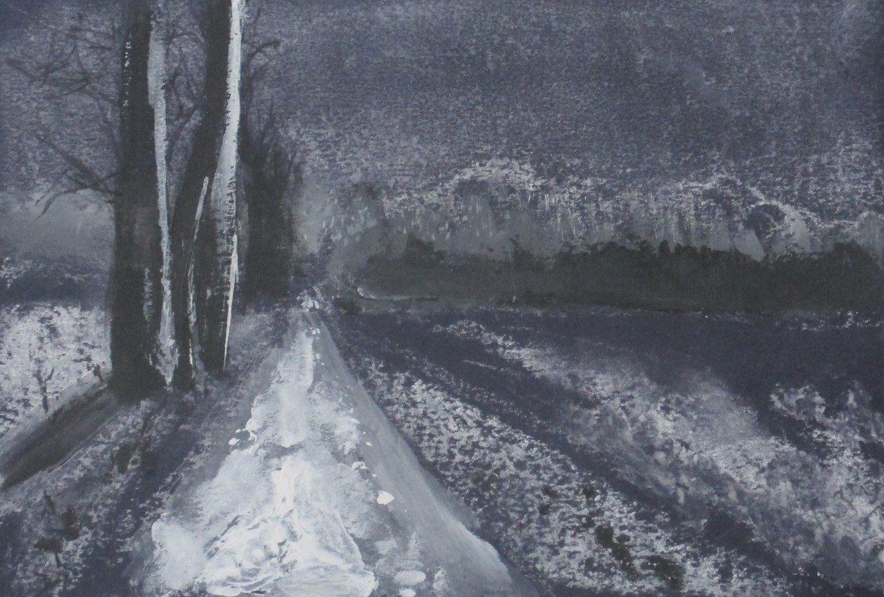 Acryl Krijt Sneeuw Bomen Lucht Inkt Weg