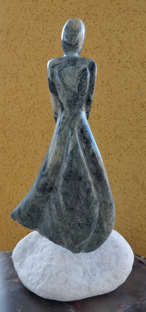 Deze dame met zwierige jurk is gemaakt van Speksteen.