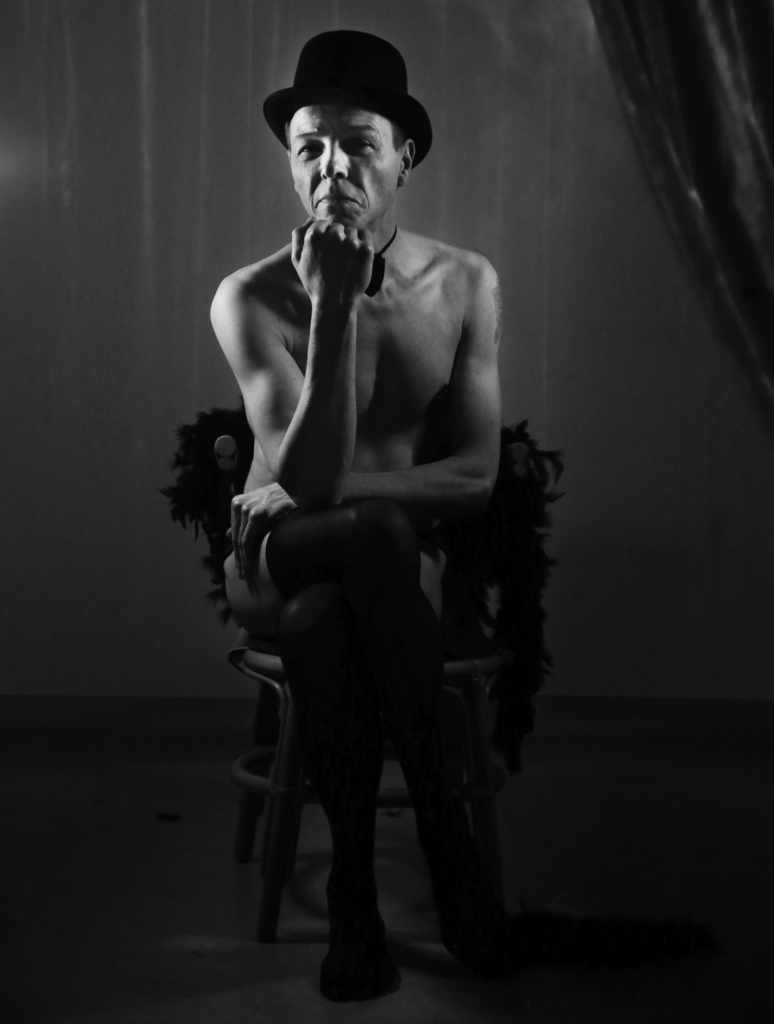 Wit Zwart Dans Man Naakt Lichaam Toneel Mannelijk Hoed Vroeger Ster Mannen Naakten Zang Podium Optreden Rook Zingen Instrument Trombone Cabaret Stage Strikje Rokerig Broeierig