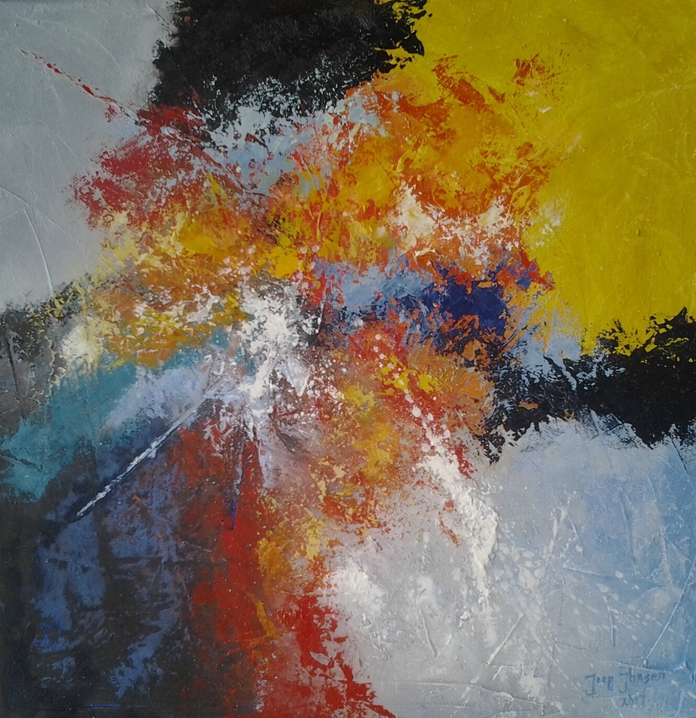 Joop Jansen begon 15 jaar geleden met het maken van tekeningen/schilderijen met pastelkrijt. Deze waren realistisch van aard. Later werden de werken meer abstract met toevoeging van gouache. Enkele jaren geleden is hij begonnen met Mixed Media. Hierbij werkt hij op een paneel waarop een ondergrond is aangebracht van verschillende materialen b.v . papier linnen en gips. Met de recente werken streeft hij naar een vrij en expressief gebruik van kleuren waarbij het eindresultaat niet geheel vaststaat. Het overschilderen van diverse lagen is onderdeel van het proces waarbij de compositie niet uit het oog wordt verloren. Het eindresultaat is geen toeval maar spontaan ontstane effecten kunnen wel een verrassende bijdrage leveren aan het geheel. Door de mestechniek te variëren en het gebruik van