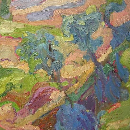 Meer dan 10 jaar is het landschap mijn hoofdthema geweest. Duinen, polders en Italie waar ik vele jaren heb gereisd en gewoond. Ik schilder naar de directe waarneming buiten in de natuur.