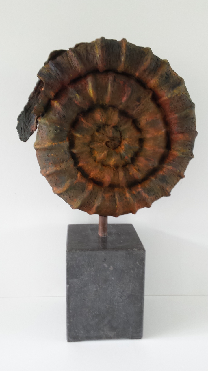 Keramische ammoniet op hardstenen sokkel