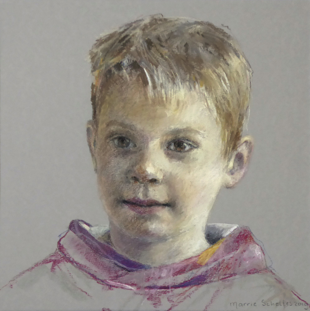 Tekeningen in gecombineerde technieken, pastelportretten en acrylschilderijen.