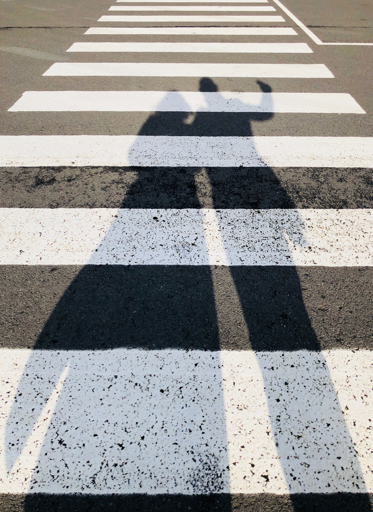 Schaduw Selfie Stelfie Zebra Zebrapad Oversteek Gestreept Zwartwit Grijs Man Vrouw Zwaaien Overgang