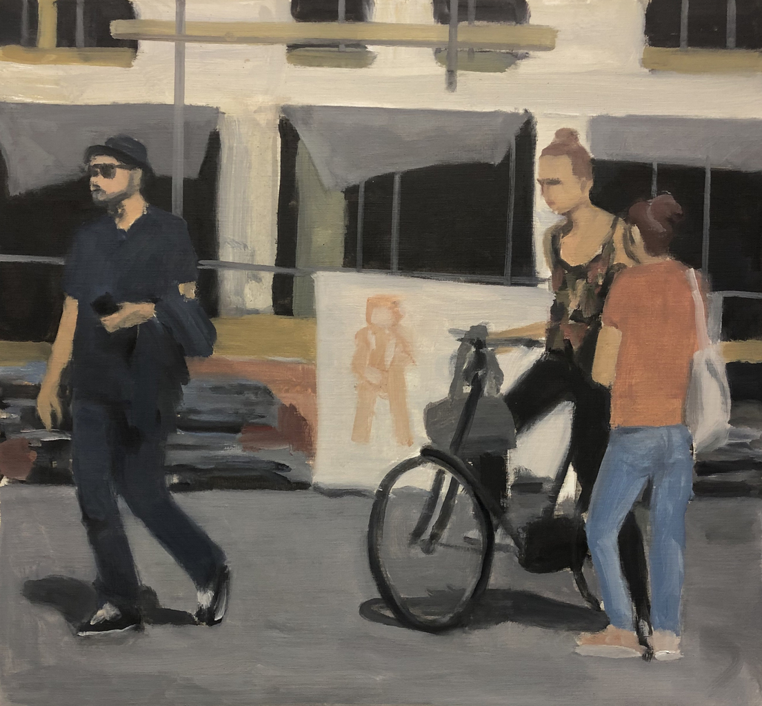 Ik schilder graag mensen in allerlei situaties, binnen of buiten. Een landschap of interieur zonder mensen kan mij ook inspireren.