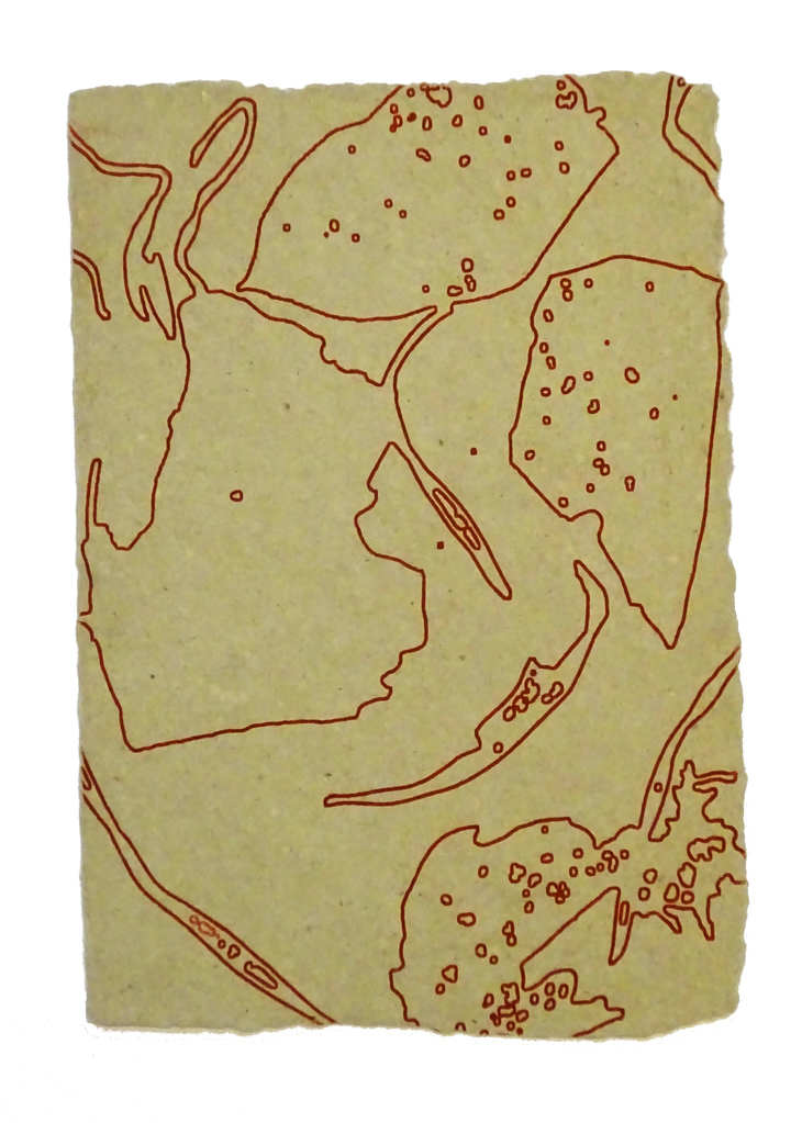 Serie over ruimte en ritme op handgeschept papier in natuurtinten.