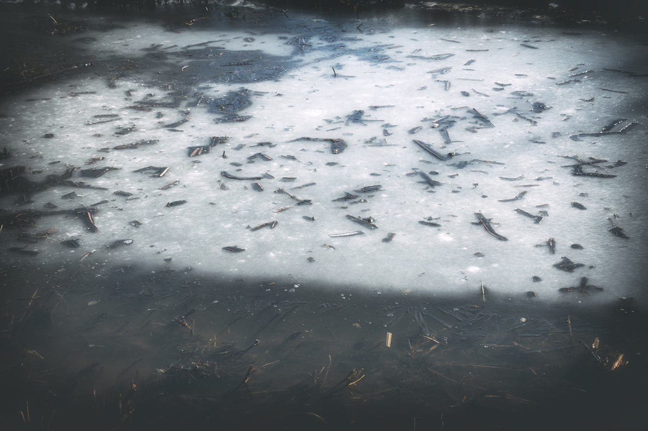 Abstract Landschap Mysterieus Natuur Winter Ijs Meer Takjes Beieren