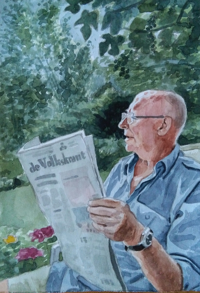 Portret van een man, die de krant leest