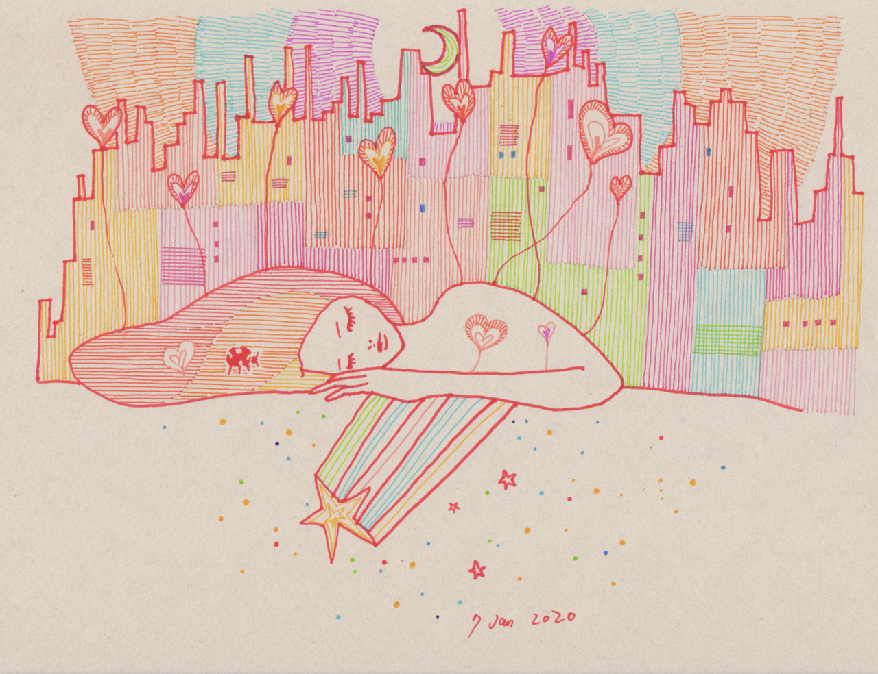Yoko Fukasawa was born in 1982. 2001-Japan traditional craft department,Metal crafts major 2001-Volkswagen new Beetle - art contest The third place. 2002-TOKYO DOME - Tableware festival Fine work. 2017-And Schizophrenia has been revealed. Her paintings are outsider art. They are characterized by simple shapes and bright colors. She wants you to look at them and relax.