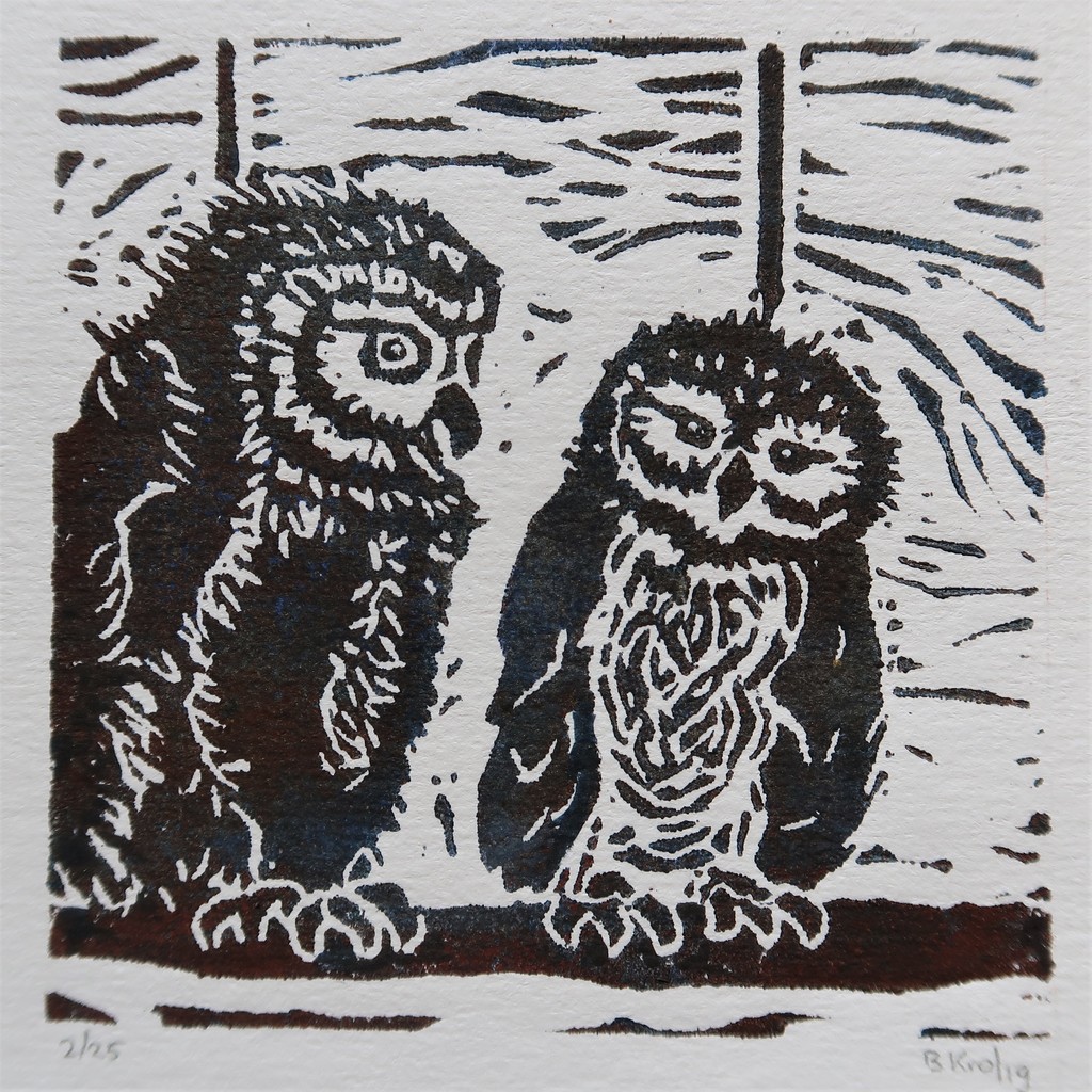 Dier Uil Natuur Lino Linosnede Drukwerk 10x10 Linocut Owl Uiltjes